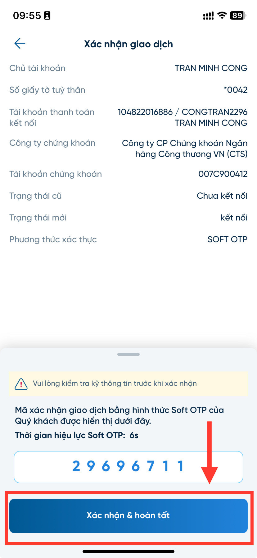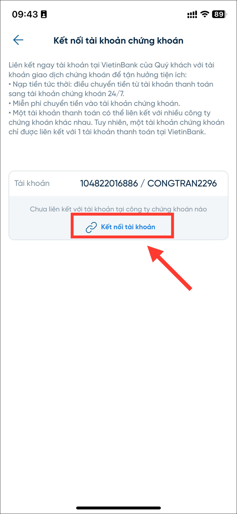 - Tài khoản ngân hàng sử dụng trên ứng dụng Vietinbank IPAY có số CC/CCCD trùng với số CC/CCCD đăng ký tại Công ty Chứng khoán.