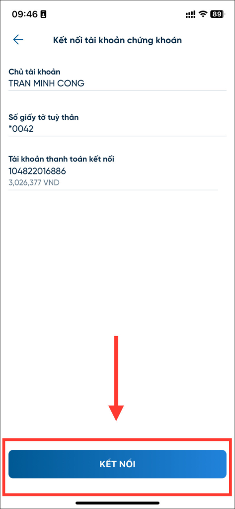 B7: Khách hàng kiểm tra lại thông tin cá nhân sau đó chọn “Kết nối”